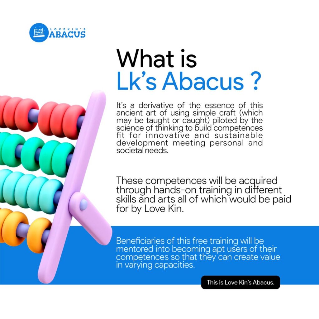 These competences will be acquired through hands-on training in different skills and arts all of which would be paid for by Love Kin.
